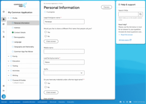 Understanding the interface of the Common App